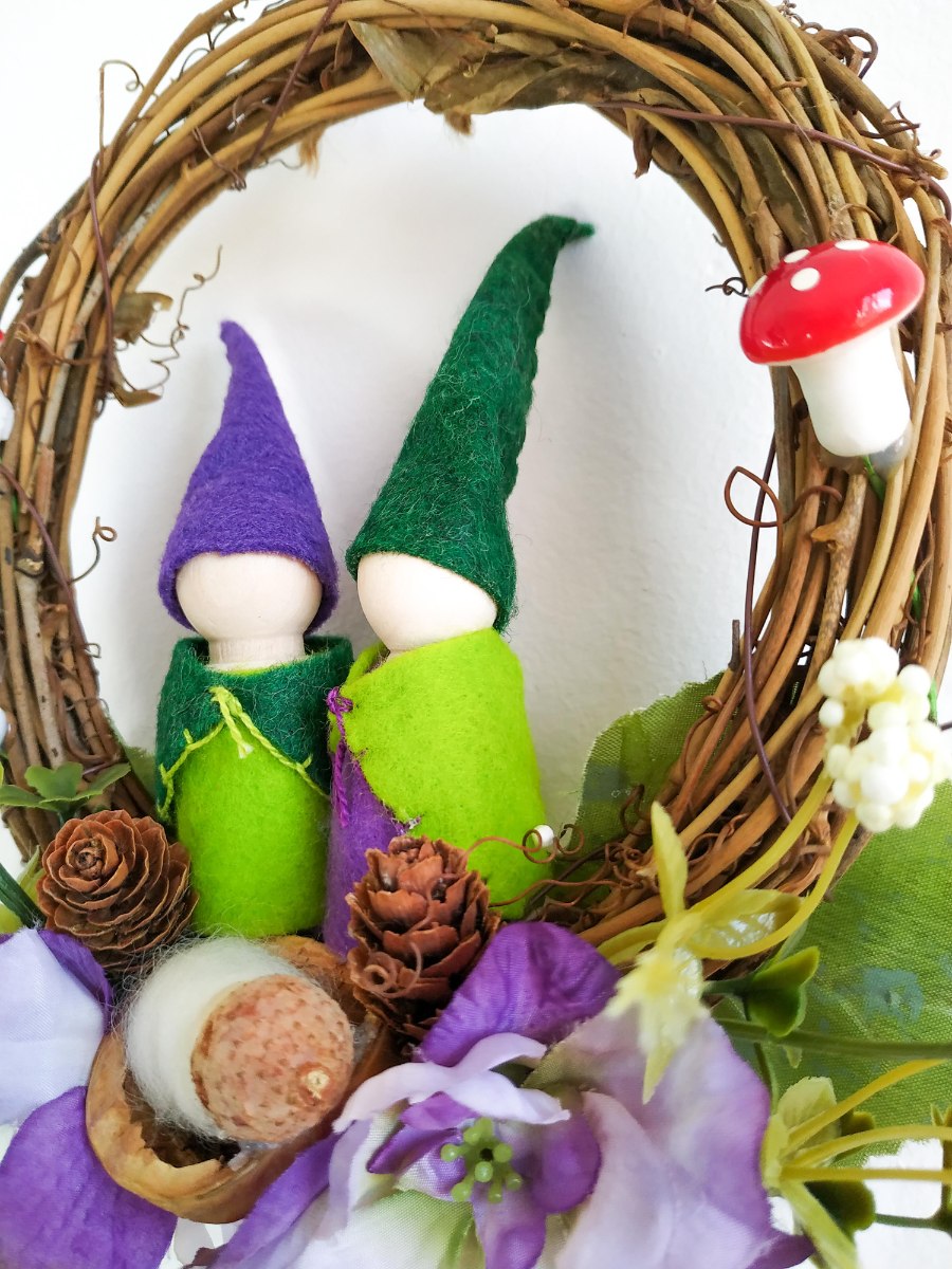 ראטן, עץ, לבד, רקמה, צמר מרינו, קלקר (הפטריות), קליפת אגוז מלך (בחלק מהזרים), ספלול טבעי, משי מלאכותי (עלים ו-או פרחים) ואצטרובלים טבעיים.