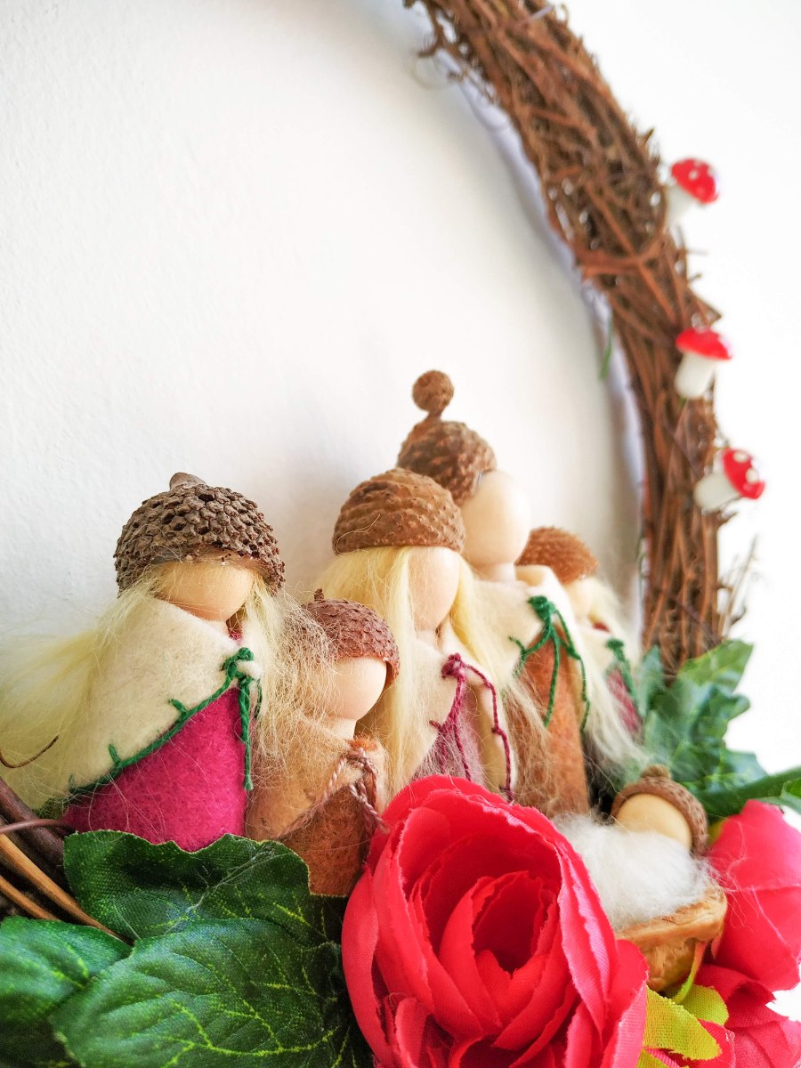 ראטן, עץ, לבד, רקמה, צמר מרינו, קלקר (הפטריות), קליפת אגוז מלך (בחלק מהזרים), ספלול טבעי, משי מלאכותי (עלים ו-או פרחים) ואצטרובלים טבעיים.