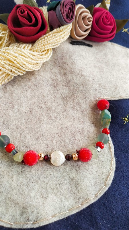 השתמשתי בחרוזים מתכשיטים שלבשה, חלקם היו עגילים בודדים, שרשראות ישנות וחלקם שרשראות חדשות ומנצנצות שלא מצאתי להן שימוש.