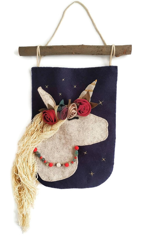 דגלוני חדי הקרן, אקססוריז לקישוט חדר הילדים, אקססוריז לחדר לנערות ולנשים עשוי בעבודת יד מלבד, עץ ותכשיטי וינטג'.