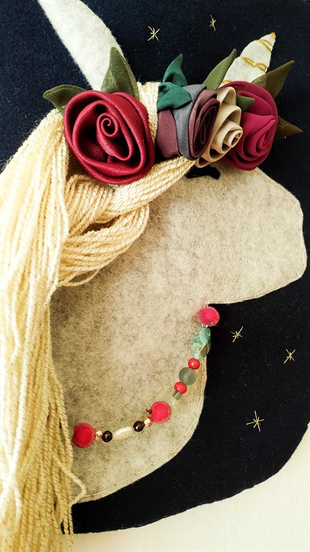 חד קרן לתליה על הקיר- ראש חד קרן פרחים בבורדו
